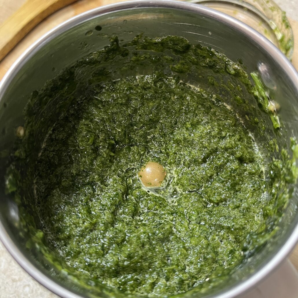 - Add the cilantro paste into the pot and mix well.