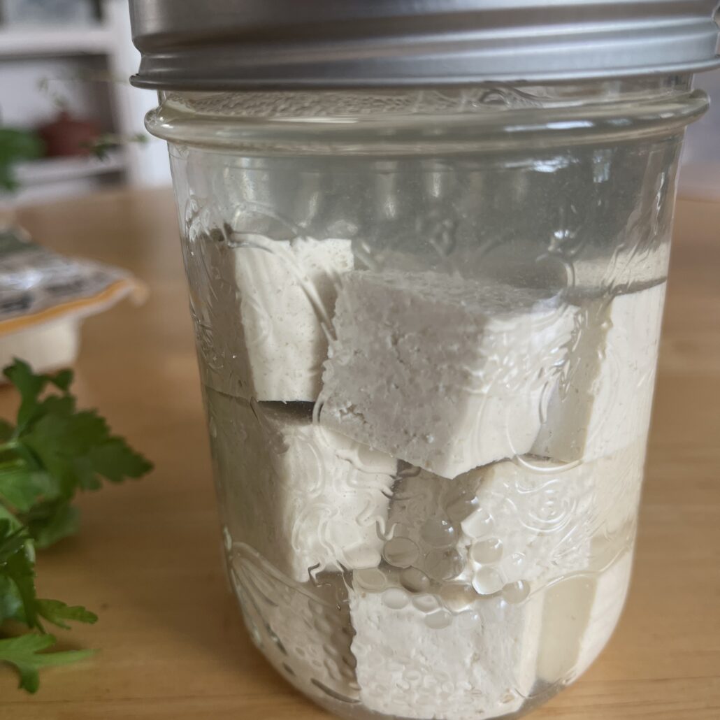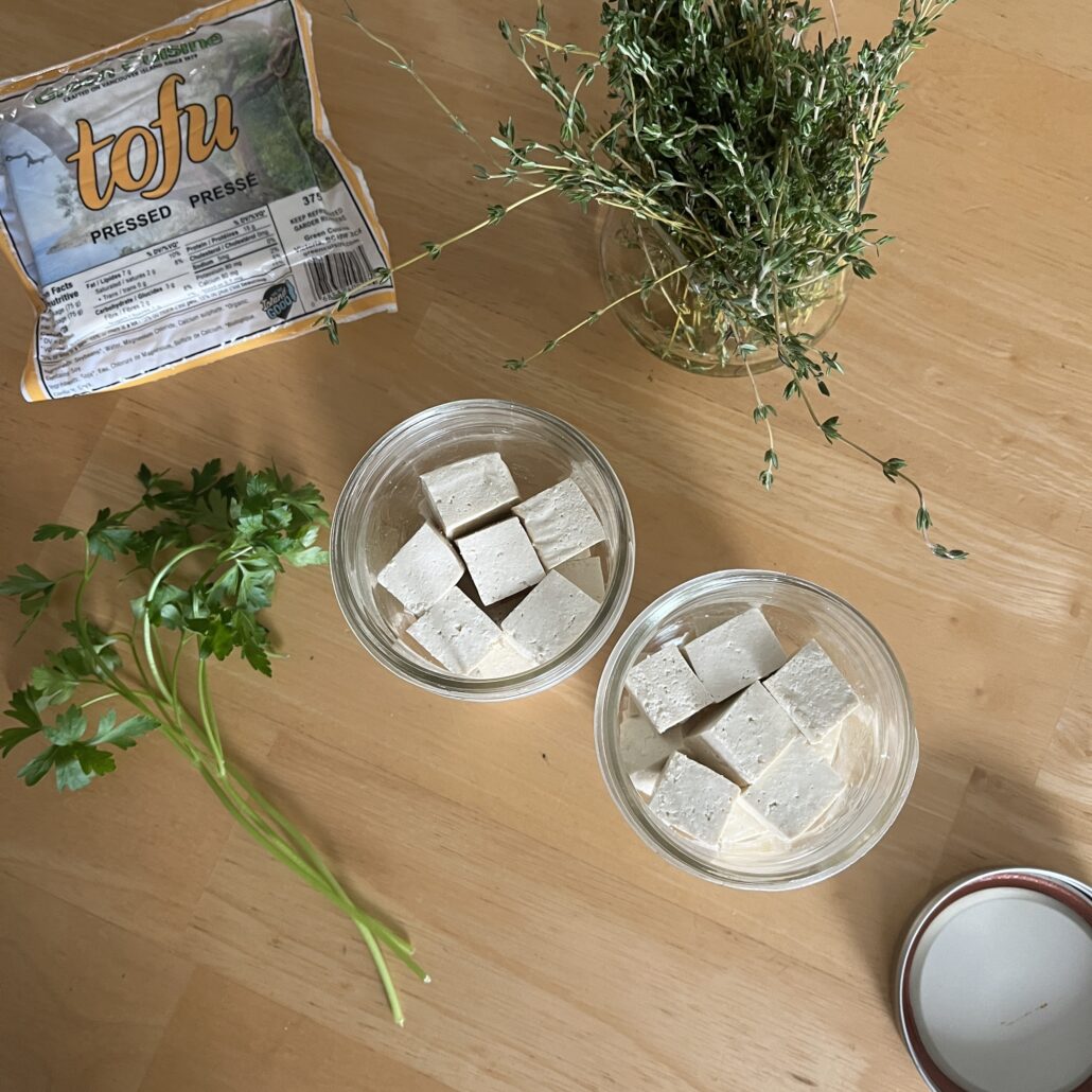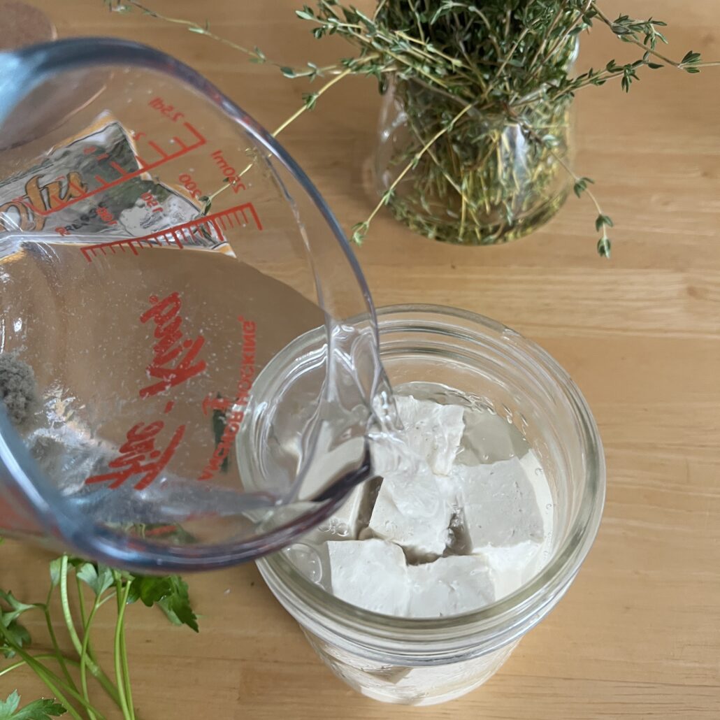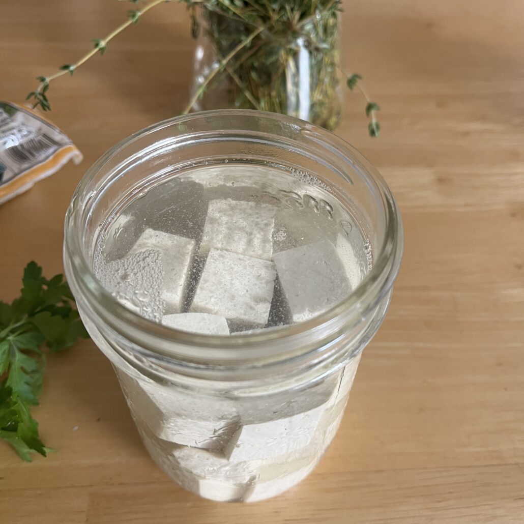 The brining process isn’t just about adding saltiness – it’s a transformation. When tofu sits in the brine solution, an osmotic process occurs, drawing out excess moisture while infusing the tofu with the brine’s flavors. This process creates that characteristic feta-like texture we’re aiming for. Brined tofu cubes can be cooked like regular tofu cubes. They will get a crispy edge when roasted or stir-fried and absorb flavours more.