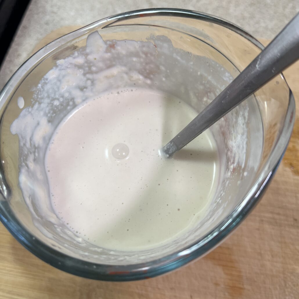- Meanwhile, whisk together the tahini and water to form a smooth, pourable sauce.