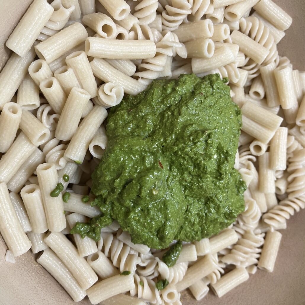 - Serve at room temperature. Garnish with nutritional yeast flakes, hemp seeds over the pasta before serving.