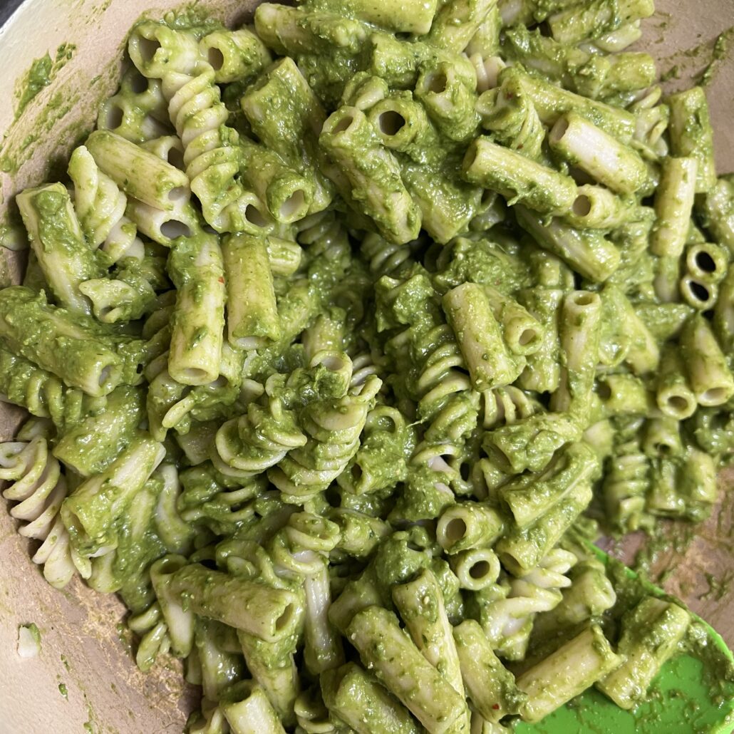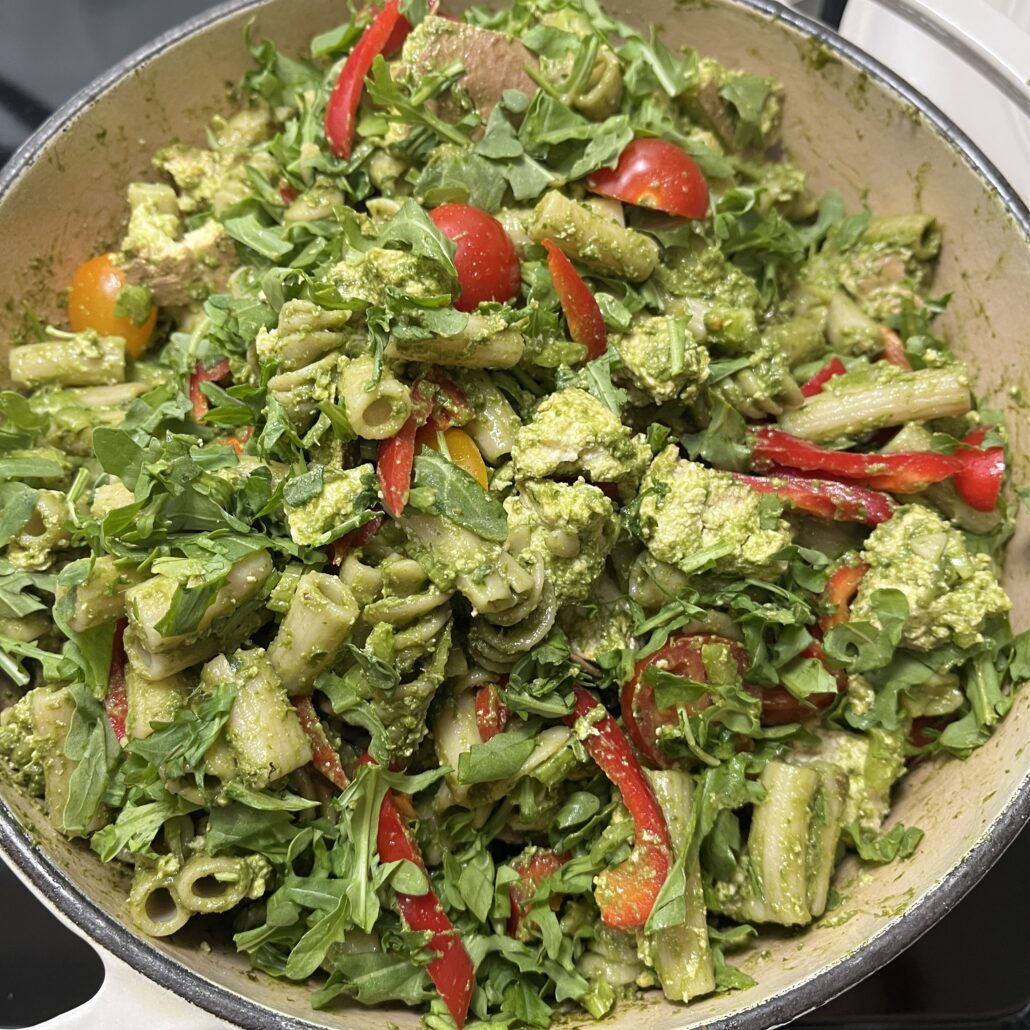 - Toss everything together carefully to avoid mushing the pasta and avocado.