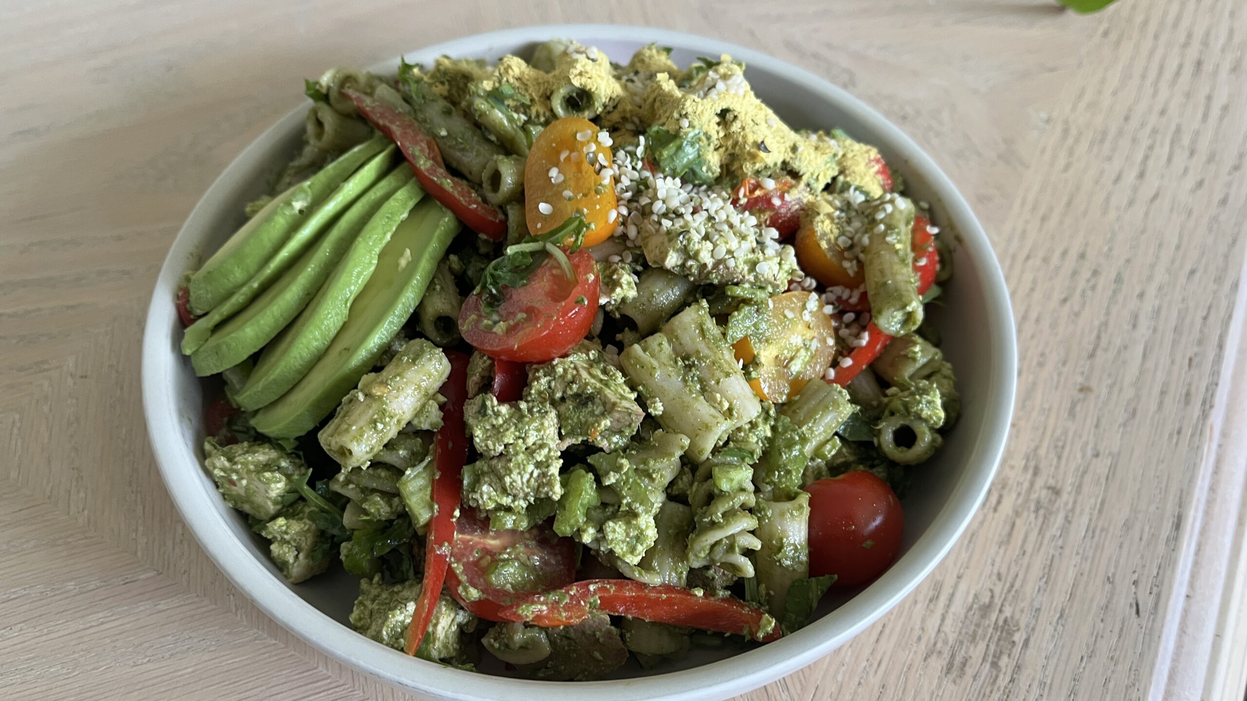 - Toss everything together carefully to avoid mushing the pasta and avocado.